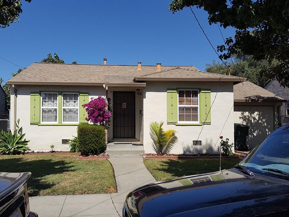 **OPEN HOUSE SUNDAY! 5:00PM - 7:00PM Call Lilly 510-329-8969 if interested in viewing** Two bedroom one bath home Laminate floors living room and hallway and tile and limestone in kitchen and bath, carpet in bedrooms. Eat in kitchen Gas stove, dishwasher, granite countertops and cabinetry. Laundry in garage. Large Backyard (great for entertaining and extra Garage/Storage unit in the backyard(Can fit a car) Non smoking. No pets but may consider small animals Lawn maintenance included. Tenant pays water, gas, electricity, garbage. Next to Woodrow Wilson Elementary, John Muir Middle School, and SL Adult School. Tennis courts, track field, basketball courts. Cherry Grove park with childrens playground ( a 2 min walk next to house). Easy walk to all shops incl Estudillo Center, Marina Square, Walmart, Ross, Burlington, Costco, restaurants, micro breweries and AC transit and Bart. Easy I-880& 580 freeway acesss. Not accepting Sec. 8 currently Tenant pays all utilities - Lawn maintenance provided