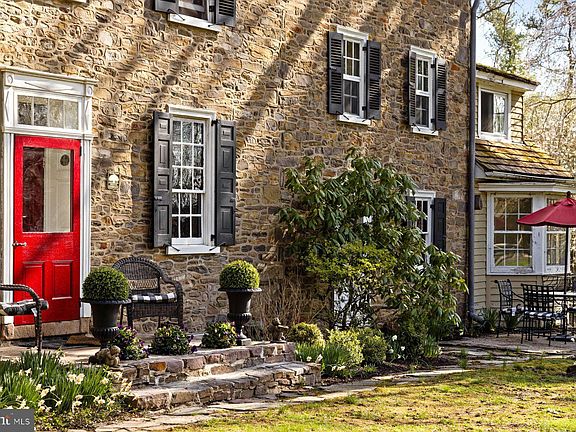Set gracefully back from the road on nearly two acres of lush grounds is this exceptional Bucks County Stone Manor home, known as Te Deum. Located between New Hope and Newtown, PA the picturesque retreat offers a rare blend of timeless beauty, thoughtful restoration, and versatile living space. Originally constructed in 1769 and significantly enlarged in 1831, the home has been lovingly restored by its current owners, preserving original details while introducing modern comfort and thoughtful design. Nestled in a peaceful, park-like setting with mature trees, vibrant gardens, and views of a neighboring pond, the long private drive welcomes you beneath one of the oldest trees in Pennsylvania, setting the tone for this extraordinary offering. Inside, the sunny home features antique pumpkin pine floors, deep window wells, and custom millwork throughout its three spacious stories. The gracious family room centers around a stunning walk-in stone fireplace and opens to both front and rear gardens, perfect for everyday living or entertaining. Four working fireplaces, each chimney professionally relined, add warmth and historic charm to the space. The main level includes living room, family room, an elegant dining room with Delft tile fireplace surround and custom cabinetry, a modest kitchen with built-in seating and cherry wood cabinetry, and a comfortable guest room with bath/laundry. Upstairs, the versatile layout includes a primary suite with fireplace and garden views, a custom designed home office with cherry cabinetry, additional bedrooms with flexible adjoining spaces, and beautifully tiled hall baths. The third floor boasts additional bedrooms or creative bonus areas ideal for creative endeavors or fitness. Each room is filled with natural light and historic detail. Zoned R2, the property allows for a multitude of uses including a professional office, boutique inn, … Ideally situated near I-295 and the Delaware River, this home offers quick access to Princeton (25 minutes), Philadelphia (30 minutes), and New York City (80 minutes), with the Yardley Train Station just five minutes away. Don’t miss your opportunity to own a truly remarkable piece of Bucks County history, where grace, privacy, and possibility come together.