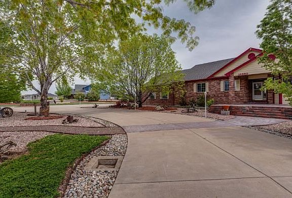 Every REX home comes with a 30-day buyback guarantee. Terms and conditions apply. Schedule your appointment with REX for a same day showing. Sprawling ranch-style equestrian property with 5 bedrooms, 4 bathrooms, and 2,560 square feet in Brighton! The show-stopping features of this 2-acre lot begin before you even walk through the door. Immaculately manicured front yard with large shade trees, stone pathways, long circular driveway, and grand stamped-concrete patio. Open-concept main floor with carpeted living room with wall-to-wall bay windows overlooking the front yard. Formal dining room follows with stunning chandelier and towering vaulted ceiling. Take a load off and relax by the gas fireplace in the family room, complete with large windows and wall nook, perfect for an entertainment center. Eat-in kitchen has light pouring in through its two skylights and features tons of cabinet space, granite countertops, large center island, stainless steel appliances including double-ovens, and backyard deck access. Three of the five bedrooms are located on the main floor, all with plush carpet flooring. You'll love the gorgeous master retreat with spa-like en-suite bathroom featuring two large closets, vaulted ceiling, relaxing soaker tub, and glass-enclosed walk-in shower. Powder room and additional full bath with shower/tub combo also located on the main floor. The completely finished basement is an entertainer's paradise. It has everything you need to get the party started! Disco dance floor, full bar, pool table, wet bar, and air hockey table all come with the purchase of this property! Once the party winds down, the basement also has 2 huge carpeted bedrooms and an updated ¾ bathroom with custom vanity and walk-in shower. The lush backyard leads out to the home's outbuilding that features its own workshop and covered parking large enough to fit an RV. Small HOA fee covers trash, recycling, and neighborhood trail maintenance. Separate laundry room with extra storage. Fantastic location, just 30 minutes from Downtown Denver, Boulder, and the Denver International Airport. Just 6 miles from the Denver Premium Outlets. Great for commuters! Your ranch dream home awaits! Don't miss out! Schedule a showing with REX today.