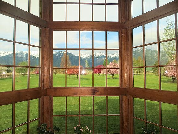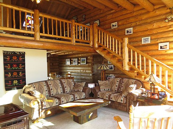 Unique hand crafted Swedish cope log home tucked behind 23 acres of pasture and trees. There are spectacular views of the nearby Elkhorn mountains, as well as Wallowa mountain views to the east. A tower of windows highlights the living room area, and stained glass windows add colorful additions to the kitchen, main bath, loft, and master bedroom. This 3 bedroom 3 bath home also has an office, loft family room, vaulted log and cedar ceilings and a finished basement with new carpeting everywhere except the workshop. This is an ideal home for those with animals and a desire for open spaces and privacy.