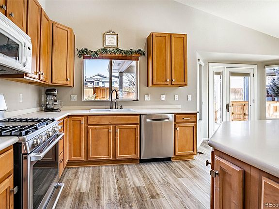 - Description: Corian Counters, Island, Pantry, Window Over Sink, Cafe Smart Appliance Gas Stovetop & Oven