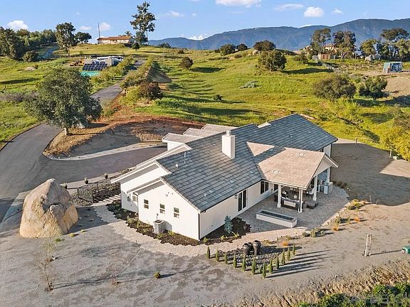 Welcome to your dream home, where luxury meets the tranquility of nature, nestled on an expansive 210,830 sqft lot zoned for agricultural use & eligible for USDA home loan options. This single-story gem features modern construction & upgrades to offer a living experience that's as breathtaking as the views it commands. This property isn't just a house; it's a gateway to a lifestyle. Newly invested $150,000 outdoor living oasis. Imagine unwinding by an oversized firepit, custom water fountains that add a serene backdrop, while the covered patio features a full living room, dining room, built-in BBQ & refrigerator atop custom slate pavers & decomposed granite cradled by all custom landscaping & majestic views of the surrounding mountains & hills. Privacy here is unparalleled. Enclosed in this haven, the property includes a 4-car attached garage with ample storage, alongside additional parking space for over 20 vehicles, an RV, or a boat. The home runs efficiently on propane. Oversized laundry room boasts extensive storage solutions. Gourmet kitchen features an oversized island, 6-burner ZLine stove & all Samsung appliances that convey. Views from the inside are just as spectacular as those outside from multiple windows & sliding glass doors, all those on the back side of the home feature custom electronic shutters. Central forced a/c & heat plus a whole house fan keep the interior temperature exactly where needed! The entire home features luxury vinyl plank flooring, tile flooring, recessed lighting, high or vaulted ceilings and touches of elegance throughout!