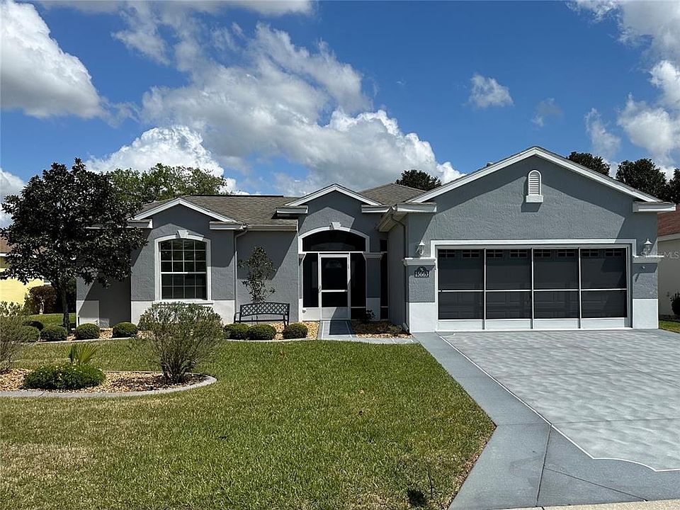 This Florida home in Summerglen, a 55+ gated community on the golf course is the perfect place for outdoor enthusiasts to enjoy the perfect combination of golf, sunshine and relaxation. Located just a short drive from the center of Ocala, this 3-bedroom, 3-bath, screened courtyard is a 1,978 sqft Miramar model home offering lush landscaping with St. Augustine grass and a private golf course view of the 18th tee from the backyard lanai. Inside, the open concept living space offers plenty of room for entertaining with 9ft ceilings throughout and Smudge-Proof dark Stainless-Steel appliances in the kitchen. The spacious master suite beckons with a huge walk-in closet, and a standalone shower with built in seat perfect for unwinding after a day on the course. If that’s not enough, the home has a separate bedroom with a full bathroom and walk-in closet off of the courtyard that can be used for private third bedroom, mother-in-law suite, guest bedroom office space, craft room, gym, or entertainment room. Flooring is tile and no carpet anywhere. The home also features a 2-car garage, central air and heating, irrigation, courtyard and community amenities like a heated pool, hot tub, clubhouse, restaurant, RV Storage, tennis courts, and a 18-hole friendly gold course. With top-notch restaurants and shopping close by, and an unbeatable location, this house is sure to please everyone!