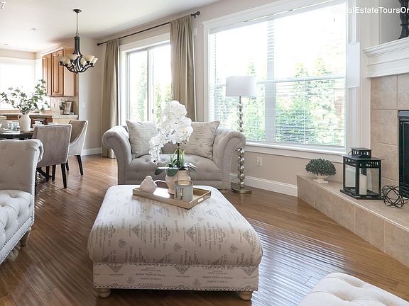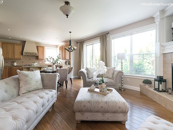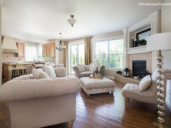 Beautiful 4 bedrooms, 2.5 bath traditional home, with 2,200 sqft, 9ft ceilings & open floorplan great room. Hand-hewn hardwood floors throughout main level which features a gourmet kitchen and gas fireplace. Slider off dinning room leads to fenced back patio/yard. 4 large bedrooms upstairs, including a master suite with beautiful vaulted ceilings, walk-in closets & deep soaker tub with a tiled walk-in shower. Minutes to I-5, 205 & Bridg