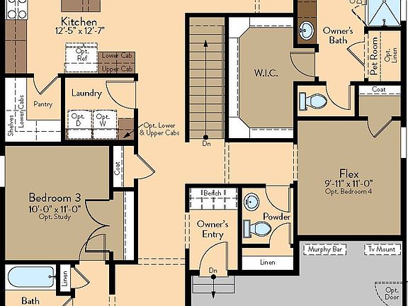 The Journey has extravagant exteriors featuring craftsman, farmhouse, and foothills exteriors. The main level consists of a lengthy welcoming foyer. The main floor is loaded with livable space featuring the owner's suit, two additional bedrooms, a flex or optional bedroom four, morning kitchen, dining room, and family room. The four-piece owner's bath showcases a pet room and has convenient access to the walk-in closet. The basement has an extended rec room, two additional bedrooms, and another flex.Prices, plans, and terms are effective on the date of publication and subject to change without notice. Depictions of homes or other features are artist conceptions. Hardscape, landscape, and other items shown may be decorator suggestions that are not included in the purchase price and availability may vary.