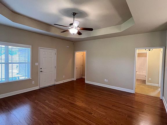 This exquisite home boasts a kitchen adorned with soft close cabinets and equipped with all stainless steel appliances, including a double kitchen sink. The great room features trey ceilings and luxurious LVP flooring, complemented by blinds throughout for added privacy and style. Step into the owner suite and discover a sanctuary of relaxation, complete with trey ceilings, a double vanity, garden tub, and a spacious walk-in shower. A glass storm door welcomes you outside to the patio, where you can enjoy serene moments. Additional highlights include a 2-car attached garage for convenience and a washer and dryer for an effortless move-in.