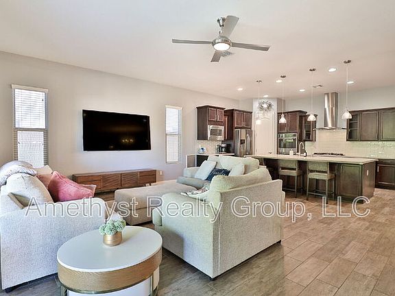 Live luxuriously in this solar-powered stunner located in the highly sought-after Palm Valley community! This spacious single-level home features 4 bedrooms, 3 bathrooms, and 2,830 sq. ft. of upgraded living spacedesigned for both comfort and efficiency. Step outside to your own private oasis: a sparkling heated saltwater pool and spa with tranquil waterfall features, cultured stone pavers, and synthetic turf for easy upkeep. Whether you're hosting or relaxing, the resort-style backyard is the perfect place to unwind year-round. Inside, enjoy an open-concept floor plan, stylish plank-style tile flooring, and a chef's kitchen with granite counters, stainless steel appliances, double ovens, and a large island for gathering. This home is equipped with energy-saving solar panels, reducing your utility costs while keeping you cool all summer long. Additional perks include an RV gate and water filtration system. Located near shopping, golf, dining, and excellent schoolsthis home truly has it all. Schedule your showing today and enjoy the perfect blend of luxury, comfort, and energy efficiency! Resident responsible for monitoring and adding salt to water softener as needed. Washer and dryer are in as is condition. Owner reserves the right to remove and not repair/replace. Enjoy the benefits of solar energy during your tenancy! Residents can utilize credits earned through solar collection while residing in the home. Please note that credits accumulated cannot be transferred upon vacating the property. Make the most of sustainable living while you call our place home! The Electric bill will remain in the Owners name so the reimbursement rate stays the same. You will be billed monthly for the electric usage after credits have been applied. Move In Costs: First full months rent, refundable security deposit, admin fees, pet fees (if applicable), and pro-rated rent if move in is the 20th or after, will be due within 2 business days of an approved application. A signed lease is required within 2 business days of application approval. Move in costs must be paid with certified check or money order delivered to UPS Store mailbox provided by management. Tenant Benefit Package (TBP)- $45 monthly TBP includes online rent payment and portal access, HVAC air filter installation, 24/7 emergency maintenance support and more. Additional details provided in the lease. Security Deposit: Equal to 1 month's rent, or approval through Obligo for alternative deposit $199 New Lease Admin Fee A minimum of $100,000.00 in Tenant Liability Insurance is required. One dog will be considered Additional $50.00 in rent per month per pet under 50lbs, fixed, and over 1 year old. Dogs over 50lbs will be considered at Owners discretion. Additional $75 in rent per month per pet 50lbs and over or under 1 year or not fixed. Additional $400.00 refundable Security Deposit per pet. Must complete pet profile here: https argmanage.Additional $199.00 Pet Administrative Fee per pet due at lease signing. Resident responsible for having turf steam cleaned if pet is on property. **Service and assistance animals are not considered pets **Alternative security deposit option is available, contact for details. All information is believed to be accurate but is not guaranteed. Changes may have occurred since photographs were taken and square footage is estimated. Furthermore, prices and dates may change. Applicants should verify all information prior to executing any agreements. **BEWARE OF SCAMS** If you found this property on Craigslist, it is a scam! If you are speaking to someone that claims to be the owner of the property, it is a scam! If you are being told to wire money for your move in funds, it is a scam! Contact Amethyst Realty Group LLC if you have any questions or concerns. Pet Details: One Dog will be considered. Dogs over 50lbs will be considered at Owners discretion. Additional $50.00 in rent per month per pet under 50lbs, fixed, and over 1 year old. Additional $75 in rent per month per pet 50lbs and over or under 1 year or not fixed. Additional $400.00 refundable Security Deposit. Must complete pet profile here: https argmanage.Additional $199.00 Pet Administrative Fee per pet due at lease signing. **Service and assistance animals are not considered pets