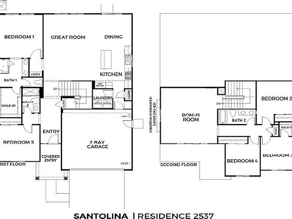 NEW CONSTRUCTION - SINGLE-FAMILY HOMES – Welcome to Santolina in Victorville, an enclave of thoughtfully-designed residences ranging from 1,602 sq. feet to 2,617 sq. feet. This beautiful Residence 2537, two-story home leaves nothing to be desired - 5 bedrooms PLUS Bonus Room, 3 Baths, and with the spacious Primary Bedroom and Bathroom and additional Bedroom and Laundry Room, all on the main floor. The grand, wide entry hall sets the stage for an amazing, open and airy Great Room, Dining and Kitchen space designed for gathering together. The gourmet Kitchen offers stylish cabinetry, brand, new stainless-steel appliances, granite counter tops and an island with seating area. Upstairs is an amazing Bonus Room, perfect for work/studying or lounging, which leads to 3 additional, spacious bedrooms and additional full bathroom with dual sinks. The luxurious Primary en suite Bath has a large walk-in shower, dual sink vanity with stone counter tops and leads to a generously-sized walk-in closet. The large backyard space is the finishing touch to take in those gorgeous, desert skyscapes. Other amazing features include "Americas Smart Home Technology" for Home Automation at your fingertips, LED recessed lighting, tank-less water heater and much more.