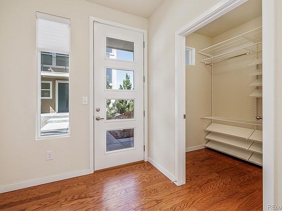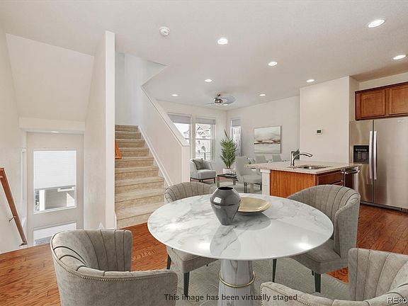 Contemporary living awaits in this stunning 3 bed, 3 bath home that is Move-In Ready! This light and bright three-story home with a unique rooftop terrace offer mountain views, combined with modern design, form, and function. Beautiful, engineered hardwood floors, tall ceilings, a neutral palette, and an open floor plan seamlessly connect the main living spaces. The gourmet kitchen boasts granite counters, an island with a breakfast bar, stainless steel appliances and a walk-in pantry. The spacious family room is flooded with natural light and opens to a covered patio. A non-conforming bedroom on the main level is perfect for a home office or flex space. Two spacious bedrooms with ensuite upgraded baths and large closets are located on the third floor. The rooftop terrace is ideal for unwinding and catching a stunning sunset or entertaining friends and family all summer. The ground floor offers a large mud room, walk-in storage area, and access to your attached 2-car garage. Home includes additional upgrades such as 4k Eufy dual-camera security with Ai, CAT 6 wiring throughout and a dual-zone thermostat. Fantastic location in close proximity to Parker Rd & Arapahoe, E-470, Inverness, Meridian, DTC, Cherry Creek State Park & Trail, Restaurants and Shopping! Schedule a showing today and experience the beauty and tranquility of 15669 E Broncos Pl for yourself.