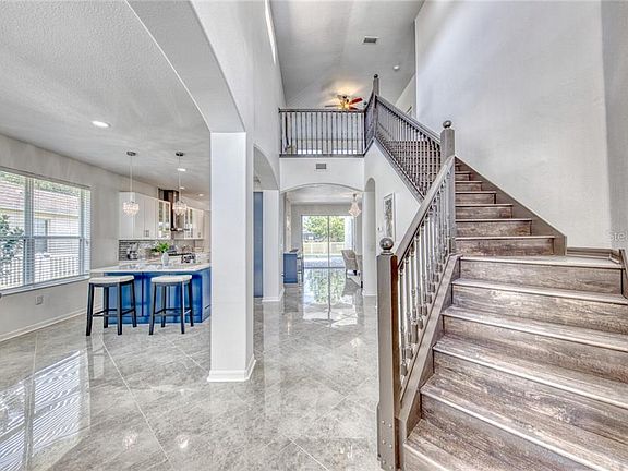 - Interior Features: Ceiling Fans(s), Eating Space In Kitchen, High Ceiling(s), Master Bedroom Downstairs, Open Floorplan, Stone Counters, Walk-In Closet(s), Crown Molding, Solid Wood Cabinets, Window Treatments, Cathedral Ceiling(s)