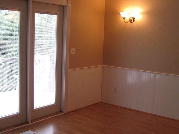 Adorable 3 bedroom, 2 bath, home. Tucked slightly uphill on a flag lot with a lovely view right outside the master bedroom. This home also features a deck that runs all along the front of the house, a private patio, 3 sets of french doors, and a massive rock fireplace with wood insert that heats the whole house if needed. Two-car attached garage and off-street parking.