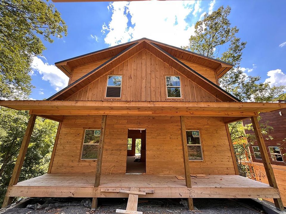 No construction loan needed! New construction 2 bedroom, 3 full bath pool cabin. Projected completion is mid-late October. Cabin will be fully furnished and turn key. Located in Bluff Mountain Acres, this cabin features 2,128 finished sqft across three levels. Main level offers a full kitchen with large open living and dining room with cathedral ceilings. The first bedroom and ensuite bath are located on this level as well. The upstairs area features a small loft and the second bedroom with full ensuite bath. The lower level is split between the game/media room and the pool room. All great amenities for a high performing rental. Rental projection from local Property Manager is $105k - $125k gross. This is a great opportunity to own a brand new cabin at a great price with a phenomenal return. Cabin is an active construction site.