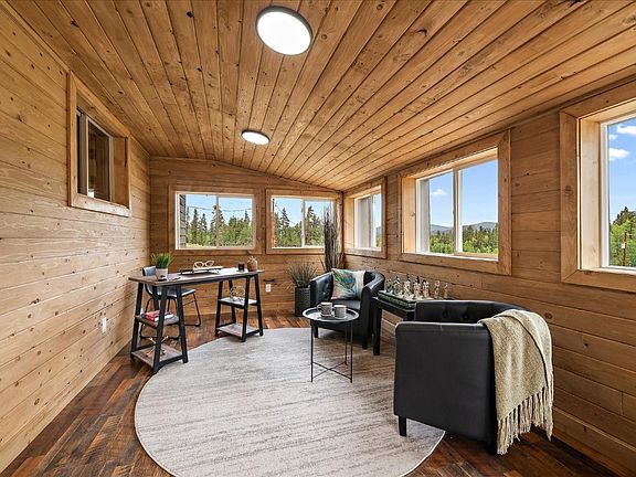 One of The Original Rustic Lodges Perched Upon Two Acres With a Perfect View of The Iconic Indian Mountain and Surrounding Tarryall Range. This Classic 3 Bedroom/3Bath Rancher Has It All! Work or Lounge In The Light Filled Study, Load The Wood Stove and Download Your Favorite Binge Series For a Toasty Night With The Family and Friends In The Spacious Great Room. Chef’s Delight…. Quartz Topped Kitchen With Gallery Appliances and Loads of Storage. Grab Your a.m. or p.m. Workout In The Flex Space Adjacent to The 2 Car Garage and Powder Room With Storage For All Your Towels and Gym Gear. Restful Nights Await In The Three Well Appointed Bedrooms With a Mountain Spa Vibe Full Bath and ¾ Bath Primary Ensuite! Ready to Enjoy More?! Head Out The Mud Room Door To The Fully Covered Jumbo Deck with High Fenced Yard For The Pup and Fun! Extended Outdoor Living Space Awaits With Your Perfectly Poised Fire Pit and Enclosed Party Pavillion Fit For Gatherings & Good Times! Top Off The Eve With a Sip From Your Private Selection or a Cigar Back In The Shack, Built To Unwind Or Re-Wind! Everything About This Property Is Fresh From The Roof To The Road. No Detail Has Been Overlooked, Including, The Carefully Curated New Furnishings and Décor Also Available.