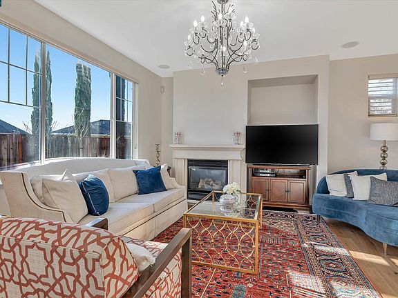Welcome home to wonderful Windemere! Highly upgraded NORTH-WEST facing 4 bedroom + loft, 2.5 bathroom home offering 1903 sqft. Over $100K in upgrades; including wood floors throughout, new interior paint, new light fixtures and more! Spacious family room with gas fireplace & large picture windows. Gourmet kitchen is complete with center island, granite countertops, stainless steel appliances and white cabinetry with decorative knobs & pulls. Large formal dining area is perfect for entertaining. Primary master suite features two walk-in closets, built-in cabinets and decorative chandelier. Light & bright primary bathroom offers dual sinks and vanity, stall shower and large soaking tub. 3 additional bedrooms share the convenient full bathroom. Loft with built-in desk is perfect for home office or homework center. Hunter Douglas blinds throughout. Tranquil backyard oasis with beautiful views all around which lets you relax in complete privacy. Large patio for entertaining, grass area and planting beds. Fig, plum, nectarine and cherry trees! * EV charger. Walk to Hidden Hills Elem, Windemere Ranch Middle & DVHS, Tiffany Roberts Sports park, farmer's market, DVC campus, library & trails! Close to 580/680, The City Center & gourmet restaurants!