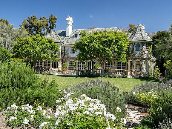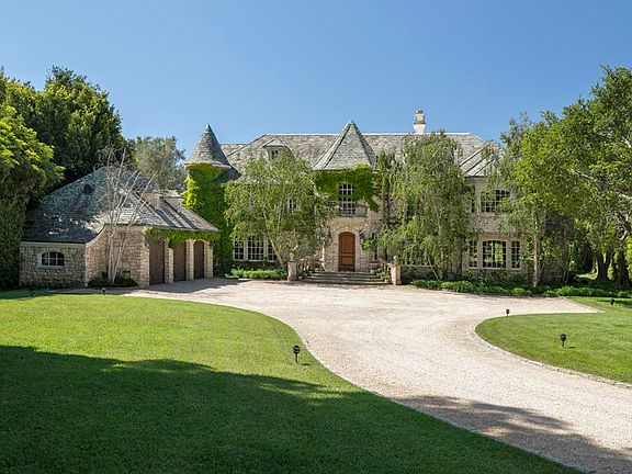 Huge Price Reduction!!! Gorgeous European Estate on Montecito's Billionaire Row and blessed in proximity to the heart of the Upper Village's restaurants and shops. Set down a private lane on a beautiful 1.49 flat acre lot. The architect Robert Schactman and builder conspired to create elegance in this rare and impressive home. This peaceful and serene estate features five bedrooms and five full bathrooms, a private study / office, five fireplaces, 2 powder baths and an au pair quarters with separate entrance. The celebrity designer's kitchen with great room boasts a sunny breakfast nook, walk in pantry, stone fireplace, and handhewn beams from a 300 year old european barn. The formal dining room with butler's pantry calls for celebration and parties! Enjoy the sumptuous