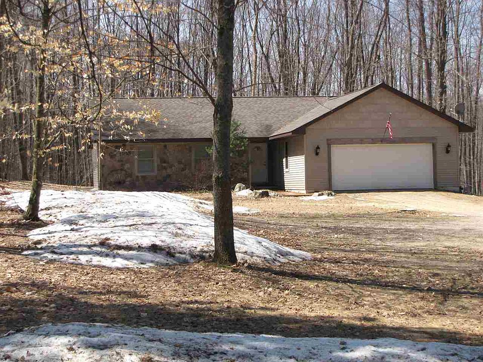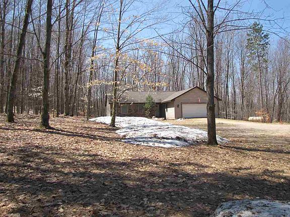 Wooded, rolling 10 acres m/l is the peaceful setting of this 3 bedroom two bath home. Open floor plan features vaulted ceilings, fireplace and sliders out to large deck. Master bedroom has private bath w/whirlpool tub, large closet and more sliders to the deck. Full basement with a set of daylight windows offer the opportunity to finish and double your living space. Two car attached garage plus additional 24 x 32 pole barn. Includes all appliances!
