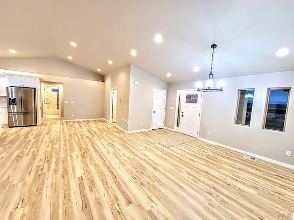 Northen Pueblo West New construction just minutes from Colorado Springs! Estimated completion Mid-Summer 2023. Buy this dream home today and you will have the option to pick all your own colors and flooring to this very beautiful single-story 3 bed 2 bath home, a timeless masterpiece with soaring vaulted ceilings. Truly unique modern sophistication & contemporary living on 1.21 acre with 3 car attached garage. Kitchen includes recessed lighting, granite counter tops, tile flooring and pantry. Master bath includes two separate sinks and walk-in closet. Covered back porch will allow you to enjoy your outdoor time in comfort and just minutes from beautiful lake Pueblo. Can't beat being the first person to live in the home! Exterior and Interior pics are of another similar home built in Pueblo West to reference how this home will look inside and out. Garage doors will be located on the right side of the home.