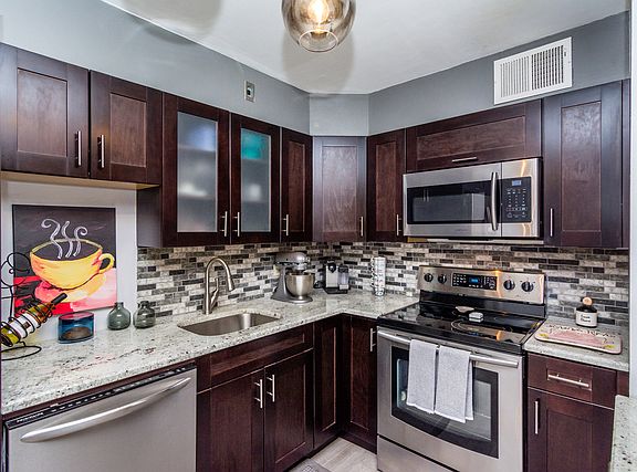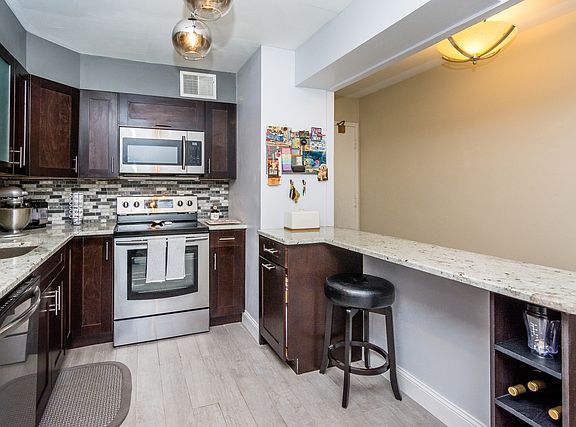 View our Virtual 3D Tour! Wonderful in-town Evanston location and move in ready! This 1 bedroom/ 1 bath condo was completely remodeled in the last 2 years. New kitchen with espresso cabinets, granite counters, stainless appliances and breakfast bar with accent lighting. The bathroom has a large shower and single sink w/ granite. A spacious south facing living room is combined with the dining area. The light filled master bedroom has a full wall of custom closets. There are wood laminate floors through-out the home and a large balcony off of the living room. Walking distance to the Metra, CTA, shopping, restaurants, Northwestern U. Covered parking is included in the price. Coin Laundry in the building and storage.