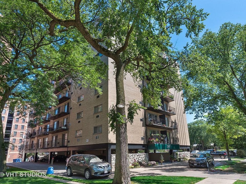 2 Bedroom, 2 bath corner unit on the top floor of elevator building. Has sunny, west facing views & large, spacious layout. Remodeled kitchen has new appliances & granite countertops. Carpet & windows are new. The building has a brand new roof, tuckpointing & new boiler within the past two years. A parking spot is included and the unit is 2 blocks from the El, Metra and downtown Evanston.