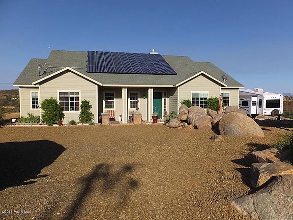 Bright and Inviting Home on Acreage! Enjoy this single level home with 4 bedrooms plus office plus formal dining room with open layout, high ceilings, pleasing architectural features, and fabulous eat-in kitchen with large breakfast bar. Great room has cozy fireplace and terrific views. Bedrooms are roomy and have superb closet space. Home has enormous 3-car garage, private well with 2500 gallon holding tank, fenced garden area, and solar system which is paid in full. Electric bills are as low as $10/month. This 4.5 acre property also features level terrain which could be excellent for horses. The Gazebo in front is a delight for relaxing!