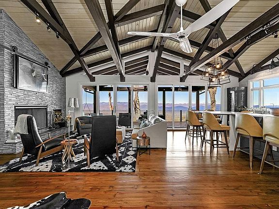 ASTONISHING VIEWS! If a home with a view is what you desire, look no further! In all of my years in Real Estate, I have never seen a view that compares to this one! This extensively renovated chalet rests high on the top of the mountain overlooking Eagle Lake, Brevard, Biltmore Park, Looking Glass Rock, and the Blue Ridge Parkway! At 3,500 ft. you'll see ever-changing views of mountain ranges from Toxaway to Mt. Mitchell. Nestled in a 7.83-acre park like setting, this is a mountain paradise! When you walk through the front door the soaring windows will show you a view like you can only imagine. Cathedral ceilings, gorgeous wood floors, stone fireplace, designer kitchen, luxurious main suite, and basement living quarters with a 2nd kitchen, are just a few features that this dream home offers. Outside you'll enjoy sprawling decks, an outdoor fireplace, extensive landscaping, and plenty of wildlife. Only 9 miles from all the conveniences of Downtown Brevard, this view home is a MUST SEE!