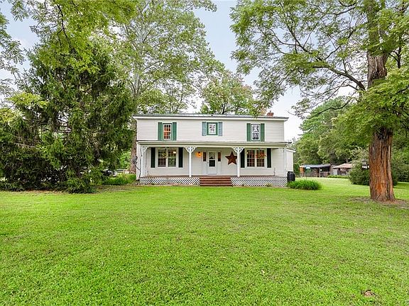 This well maintained farmette is located on a 9.75 ac parcel, fenced with 3 separate pastures and access to a beautiful pond. The home has 4 good sized bedrooms with ample closet space, plus 2 1/2 baths. There are 2 gas heating stoves and 1 wood burning stove, a heat pump new in 2004 and back up electric baseboard heat. New front door and 7 new windows are ordered and will be installed. Nice eat-in-kitchen, formal dining room with original built-ins and a very gracious living room. Above ground pool with new decking and pool pump, several outbuildings including: a garden barn, large chicken house, 2 stables, tack room and an additional large horse run-in. Large workshop with separate 200 amp service and its own wood stove. There is newer fencing on the front pastures as well as mature fruit trees/bushes and perennial herbs/vegetables. The refrigerators in kitchen and workshop, washer, dryer, 2 gas stoves, and 1 wood burning stove all convey $ 5000 in closing costs paid for new flooring.