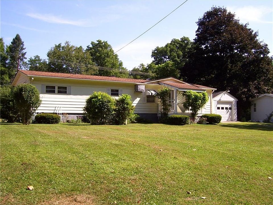 Single story living with 1 car garage, 3 bdrm, 1 bath home with quaint front porch and spacious shady deck out back. Lower level family room with 2nd kitchen updated mechanicals and all appliances included. Priced for cash offers only, don't wait.