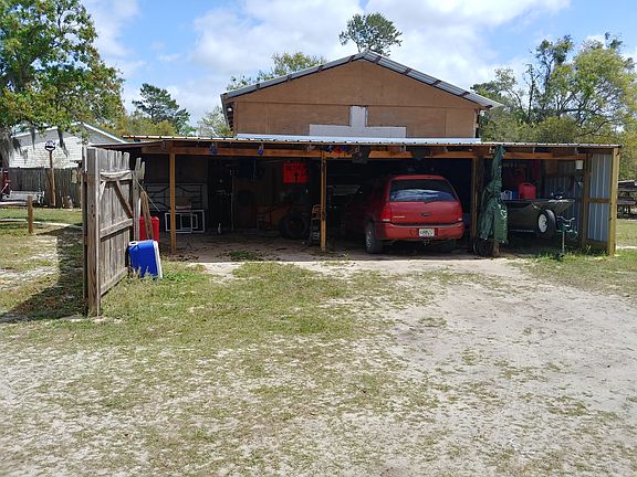 Barn with a lift for vehicles. Open car port attached to barn for 3 vehicles. Barn has a toilet outside. Car and Boat not for sale. Office, Living Room, Family Room, front and back covered porch. Area for above ground pool. Located in Ocala National Forest. Has generator for hurricanes. Call for house visitation at 352-546-2639. If we dont answer, please leave voicemail.