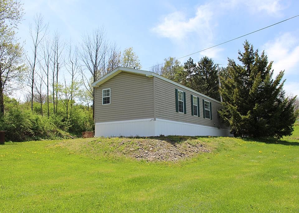 Nice country setting!! 2 bedroom single wide with low maintenance living in mind.Vaulted ceilings and open living areas with lots of natural light. Central air, shed and one car garage with a workshop!! All on 1.1 acres!!!!!
