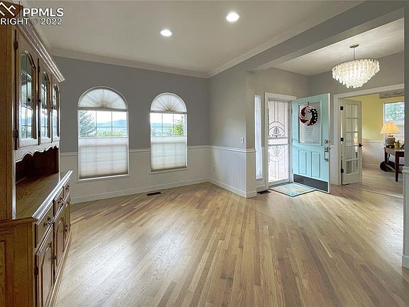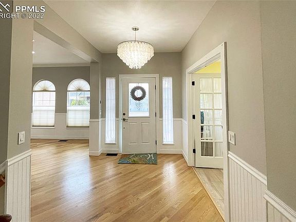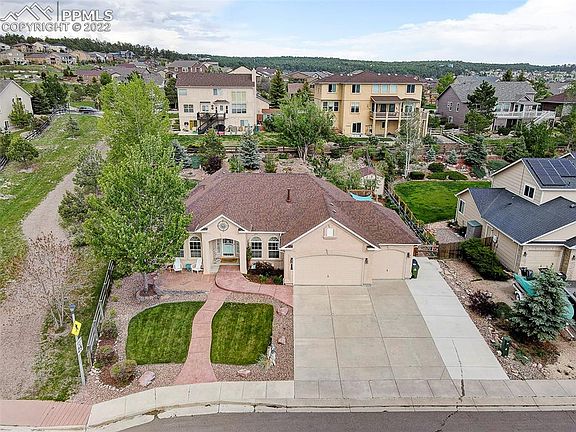 HUGE PRICE DROP! Seller is ready to have someone enjoy this beautiful home which is a pure joy! Come and relax in the calming atmosphere. This rancher boasts of a third of an acre with a delightful view of Mt Herman in Jackson Creek. The property is conveniently close to shopping centers, entertainment and excellent schools in the Lewis Palmer school District 38!!!Also close to a playground, basket ball court. Park your boat or RV on concrete beside the garage-no HOA-just great neighbors who have pride in ownership. This is a forever home with details in mind. Italian Marazzi tile, dimmer switches, Italian farm sink, new Heat and Glow fireplace, nylon carpet with luxurious pad in master bedroom, whole house water filter, new Hot Springs hot tub, spacious party Trex deck with gazebo, refinished hardwood floors in non-yellowing acrylic, new carpet downstairs, gas stove, dart board and much more. Custom copper bar and vent hood, counter depth refrigerator, fountain and bird bath make for a heavenly retreat. Completely updated in a relaxed style refreshes and energies. Wainscoting throughout the main floor. The home features Bertch cabinets in kitchen and master bath with pull out drawers and 3 lazy susan’s. New security door and all window wells are secure and fully decorated. Beautiful yard with trees that have been maintained and professionally trimmed, sprinkler system, gutters have leaf guards, wildflowers and perennials adore seasonally. Jetted garden tub, humidifier, top down bottom up window coverings, so many extras already for your enjoyment. You will have to see the beauty quick, it will not last and once you are there, you will not want to leave! The only thing lacking in this home is a new owner to make it their own & love it!!!