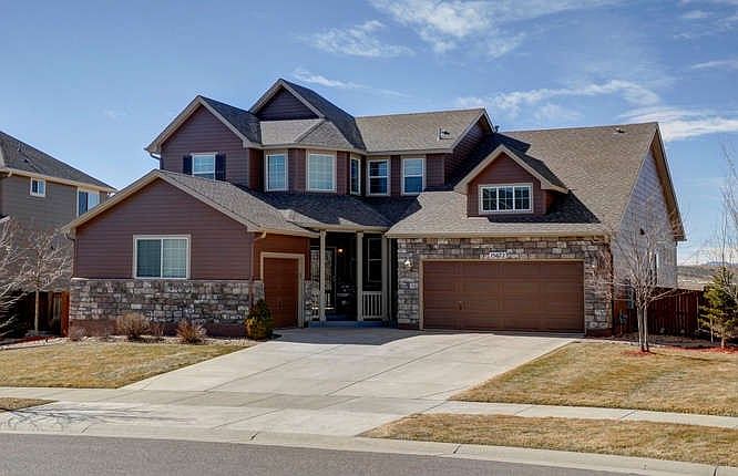 This gorgeous 4 bedroom, 4 bath home with 3,016 finished square feet is located in the Horse Creek neighborhood. This beautiful home has amazing views of the Front Range. Attached two-car and separate 1-car hobby garage. The kitchen has upgraded fixtures, granite countertops and an island. An upstairs bedroom has its own bathroom-perfect as a guest retreat! The spacious master suite has vaulted ceilings and a 5-piece master bath with several upgrades. The backyard is perfect for relaxing or entertaining with friends and family. The walkout basement is unfinished, allowing for you to add your own personal touch as it opens up to spectacular views! This beautiful newer home is a definite must see, comes complete with snow blower!