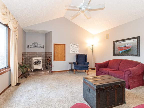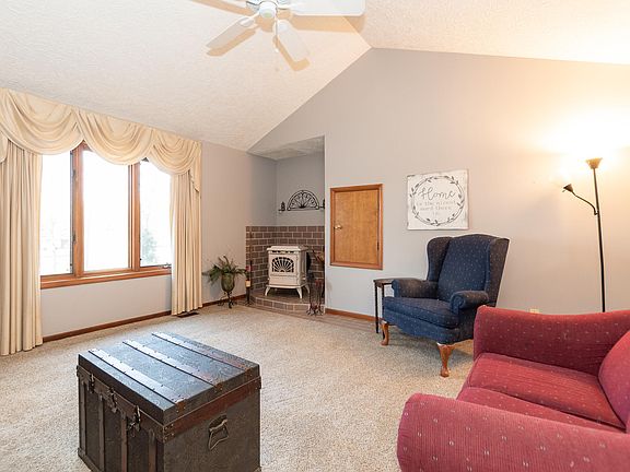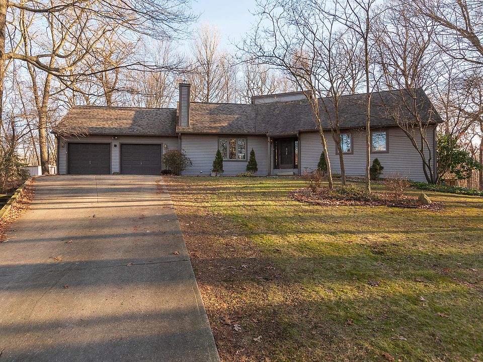 Buyers are going to love this setting! With over 2 acres this property is surrounded by woods and provides spectacular views and privacy yet it is located on a cul-de-sac in a neighborhood. With a total of 4 bedrooms including a master suite it boasts over 2600 finished sq ft. The house is heated using Geothermal technology which means all the floors are heated including the lower level. The living room has vaulted ceiling and a fireplace. The sunken family room has large windows and is accented by the pine vaulted ceiling. All 3 main level bedrooms are located at the end of the extra wide hallway along with the family bathroom. The kitchen includes all the appliances, eating area, built-in desk and breakfast bar. The main floor laundry has been converted to a mudroom but could be easily converted back. The lower level has a finished living area, exercise room, 4th bedroom w/egress and workshop w/access to the side yard.