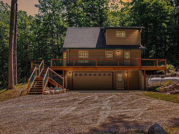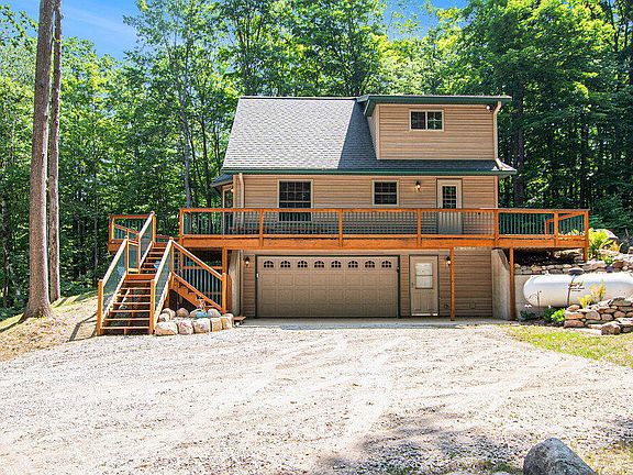 All Sports Rose Lake shared public access nearby. This 3 br, 2 bath chalet style home offers a main floor master, tongue and groove cathedral ceilings, slate tile imported from Italy, combined living and dining rooms, galley style kitchen, main floor laundry, central air, direct vent fireplace, attached garage, security lightning, over 500 sq ft of exterior decking, natural stone walk to rear of home, utility shed for extra storage and a hot tub. The home is situated on 4 lots with 25 ft. of access to the lake. Come enjoy boating, fishing, paddle sports and many other activities the area has to offer for both summer and winter. (There are no association dues.) This home is very quiet and relaxing. Needs nothing, this is a drop your bags opportunity.