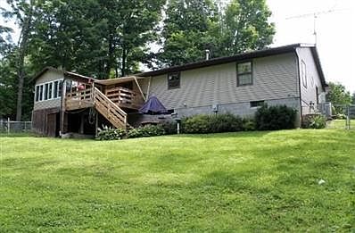 Ranch home with open floor plan including 4-5 bedrooms, 3 full baths, 2 car garage, and full finished walkout lower level. Approximately 2,500 square feet, enclosed porch, fenced in yard, deck and covered patio out back overlooking the woods, conveniently located on .43 acres about 10 minutes from town. Master bedroom suite on the main floor with master closet, bath with a garden tub. Additional two bedrooms on the other side of the home separated with a full bath. Kitchen is big and open with an island and plenty of counter space, all kitchen appliances convey, dining room and living room are perfect for entertaining. Two additional bedrooms in the lower level and main level laundry room. This one won't last long.