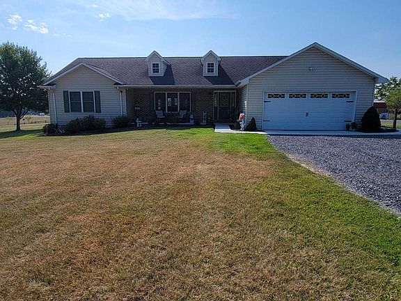 This beautiful home on 6 acres in the countryside with a small pond definitely offers a peaceful and serene environment. The 3-bedroom, 2-bath layout with an open floor plan provides ample space for comfortable living. The combined kitchen, living room, and dining room area of 27x29 feet offers a spacious and connected living space. New counter tops and appliances within the past year. 2-car attached garage and a 2-car detached garage is great for parking and additional storage. The two outbuildings, sized at 10x16 and 8x10, could serve various purposes such as storage, workshops, or hobby spaces. A fenced yard adds privacy and security, making it an ideal space for pets or outdoor activities. Having a front porch is a charming touch, creating a welcoming entrance and a place to enjoy the outdoors. The peach trees on the property add natural beauty and could provide delicious fruit when in season. The combination of a spacious layout, attractive features like the small pond, outbuildings, garages and fenced yard, along with beautiful views, creates a property with a lot of potential for a comfortable and enjoyable country living experience. This is a must see! Refrigerator, washer, dryer, playset and dog kennel do not convey. Chicken coops possibly can stay.