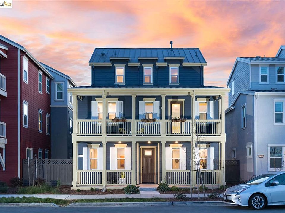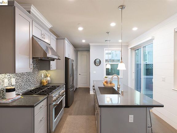 This 2016 Marina Shores tri-level home is modern with traditional touches. The exterior is impressive with a balcony that allows you to take in the serene views of the marina and Oakland Hills.