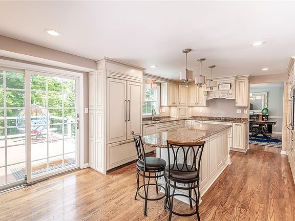 Remarkable colonial in the heart of Upper St Clair! The first floor boasts gorgeous floors, tons of natural light, neutral paint and access to the massive rear deck. The classic dining room opens graciously into the formal living room and features a large window and room for a very large table. the remodeled kitchen has granite counter tops, stainless appliances, nice custom lighting and a huge island. The comfortable family room offers another fireplace, gorgeous floors, and a bowed window for your dog or cat! The first floor den is perfectly placed and has lovely built-ins and glass French pocket doors. Upstairs you will find five generously-sized bedrooms, all with great light, storage and fantastic floors. The Owners' Suite has a lovely master bath and another room has its own powder room! You'll find a cedar closet in the hall along with another full bath. Finished game room plus another powder room downstairs! Huge concrete driveway and patio with access to the fenced-in yard.