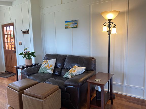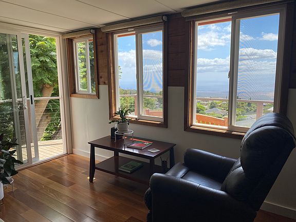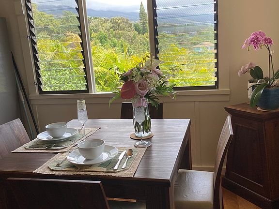 This is a lovely and comfortable, remodeled and furnished home with stunning mountain and ocean views. The home is surrounded by extensive gardens that are attended by a bi-weekly gardener. The home comes with two cats whose food is provided and they have an automatic feeder and waterer. $3500 plus electricity. The home is available July 1 for a one year rental. Serious inquiries only. The master bedroom has an adjoining master bath with a full bathtub, it is on the lower level of the house down a flight of stairs. The second bedroom is a full bed with an adjacent full bath with a standup shower. Two indoor/outdoor cats (mostly outdoor), all good included, automatic feeder and waterer. + electricity ($150 ish per month) No additional pets plz 1 bd/1ba cottage on property to be visited by owner occasionally Yard maintenance included