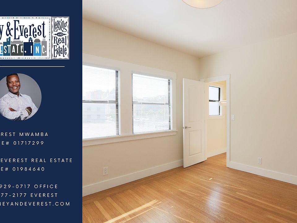 1BR/1BA apartment $1,900/month annual lease * Shared laundry * Available: Now Address: 1568 Madison #9 Contemporary, bright 1BR/1BA on the west side of Lake Merritt in Oakland's Civic Center neighborhood. Floors are lovely hardwood except in bath. Large, open living room has kitchen at one end. C-shaped kitchen's stainless appliances include gas stove and dishwasher. Its breakfast bar faces the living room and can seat three. Bedroom has a walk-in closet with window and sliding mirror doors. Attractive bath has shower-over-tub. Shared washer and dryer are located in the building's hallway. Building is in a great location, one block from Lake Merritt, with plenty of shopping and dining opportunities within walking distance. Walk Score is 98, Transit Score is 75. Everest Mwamba DRE# 01717299 Kenney & Everest Real Estate DRE# 01984640 Leasing and Real Estate: Our Family Business for Over 100 Years.