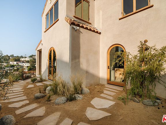 Introducing Hacienda Ocaso, a meticulously updated Spanish-style sanctuary that celebrates its architectural heritage with elevated upgrades. Perched on a serene, palm-lined corner above Sunset Boulevard in Silver Lake, this expansive flat corner lot offers sweeping, unobstructed views of the Observatory, the Hollywood Sign, and the surrounding hills.Designed by Design Assembly LA, Hacienda Ocaso takes its name from the Spanish word for sunset ("ocaso"), a tribute to the vibrant evening skies visible from the property. The home comprises a beautifully crafted main house, a charming pool house/ADU, and an innovative studio fashioned from three shipping containers. This versatile layout provides the feel of a single, cohesive retreat while offering flexible spaces for guests, creative pursuits, or extended family with the added benefit of income potential. The 480 sq. ft. shipping container studio, not included in the total square footage, further enhances the property's adaptability. The interiors feature five spacious bedrooms and four and a half bathrooms, each reflecting a commitment to design and craftsmanship. Globally sourced materials, handcrafted by California artisans, include ORCA tiles in the kitchen, hand-troweled cement floors, and Portola lime-washed walls, complemented by custom wood casement windows that seamlessly blend indoor and outdoor spaces, inviting natural light to enhance every room. This beautifully designed kitchen features premium appliances, artisanal ORCA tiles, and an inviting layout ideal for hosting and everyday cooking. Highlights include an AGA range, stone countertops, and integrated appliances that seamlessly blend functionality with artistry. Bathrooms serve as tranquil retreats, boasting limestone counters, plaster showers, and antique marble sinks sourced from France, paired with solid brass and polished nickel fixtures for an elevated experience. Outdoor spaces are equally impressive, centered around a brand-new pool framed by lush landscaping. Adjacent to the pool, the pool house provides a flexible space for guests, an office, or a studio. Located in the heart of Silver Lake, Hacienda Ocaso is perfectly positioned to enjoy the neighborhood's vibrant charm. Stroll to Sunset Boulevard's boutique shops, cozy cafes, and world-class restaurants including neighborhood favorites like Botanica and LAMILL Coffeeor explore iconic landmarks like the Silver Lake Reservoir, Sunset Junction, and the historic stair streets that weave through the hills. Renowned for its creative energy and welcoming community, Silver Lake offers a unique lifestyle where culture, design, and everyday convenience come together.