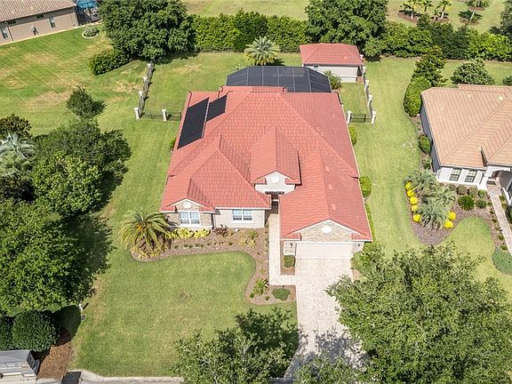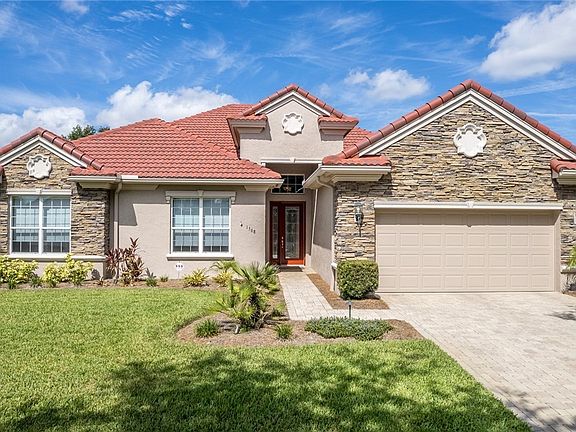 Behind the stately guard-gated entrance to Terra Vista awaits a world-class experience of seemingly unlimited amenities. From exquisite culinary dining in the members-only Skyview restaurant to the laidback casual choices of the Tiki bar and grill you can have your choice of venues all within an easy golf cart ride through the neighborhood. Multiple gathering spots include the Community Center that features a farmers market a few times a month plus live performances scattered throughout the year. The Spa at Bella Vita is unparalleled amongst the most exclusive health and fitness clubs in central Florida. Not to mention the championship golf, pickleball and tennis courts, dog park and more. Terra Vista offers a unique experience unto itself. And when you step into this home, you’ll know you found your forever home. The sparkle in your eyes could be a reflection from the Swarovski crystal chandeliers in foyer and dining room or the unimaginable upgrades starting with a kitchen remodel and custom built-in entertainment center in the living room in 2022, this open concept living space opens to the outdoors with solar heated pool and high BTU gas heater for the spa. The pool cage even has UV blocking solar screens plus a 21ft power roller shade at the edge of lanai. Luxurious quartz countertops with modern cabinets grace the kitchen and provide maximum storage capacity plus a walk-in pantry. The primary suite features tray ceiling with crown molding, separate vanities, soaking tub and walk in shower, and custom built-in closet organizer. Even the garage has custom cabinets with a butcher-block work bench! Smart blinds follow Alexa’s command to adjust the amount of daylight to fit your mood. The extras don’t stop inside the house either! Outside you’ll find a 384 sq ft Casita for additional guest suite, office or exercise room. Don’t wait to build your dream home, start living in it today!
