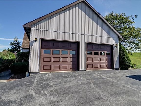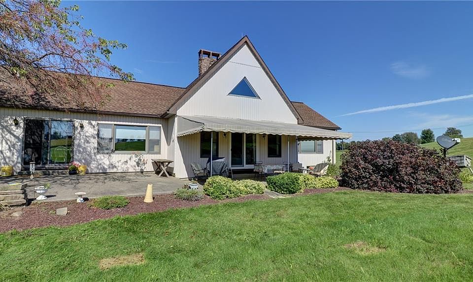 This is a magnificent property consisting of a 1988, 4 bed, 3 bath contemporary home on 12.30 beautiful acres. Nice practical layout with a central stone fireplace. The 3136 square footage includes 960 of finished basement with a fabulous billiards room! Huge private patio in the back with an awning for hot summer days and stone fireplace for cool evenings. Fully paved and freshly sealed drive and parking area. Public water at the street. Two amazing spring-fed clear water ponds for all kinds of recreation including swimming, fishing, duck hunting, bird watching, skating, you name it. One is .82 acres with a bridge to an island and the other is .60 acres. Then there are the barns: over 6000 square feet of storage including a controlled paint booth. Your imagination is the limit for business or pleasure! This property has so much to offer.