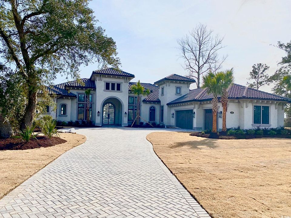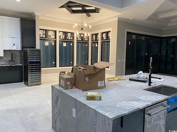 Amazing single story plan being built directly on the waterway. This custom home is over 4800 heated square feet all on one floor with over 7500 square feet under roof. 4 Bedrooms, 4 Full Bathrooms, 1 half bathroom plus a pool bathroom. This home is located in the Palermo Section of Grande Dunes which offers the best views of the intracoastal waterway. The outside of this home will feature a private dock with a covered 16k lb boat lift, infinity edge pool with the illusion of water flowing into the intracoastal. The interior of the home features 12'-17' coffered ceilings in the living room, dining room, family room, dinette, kitchen and covered lanais. Custom kitchen complete with 48" Commercial Gas Range, oversized pantry, separate freezer and refrigerator, and custom cabinets. The owners suite has a private sitting area overlooking the waterway. It is complete with 2 separate closets, soaking tub, oversized vanity, and a large walk in shower. This home was designed with view in mind. The rear of the house is almost all over-sized bronze windows and doors. You will love the outdoors with the 1540 square feet of covered lanais overlooking the waterway. This home is located in South Carolina’s premier Gated Waterway community in Myrtle Beach. Grande Dunes is a 2200 acre development with amenities galore. Owners at Grande Dunes enjoy a 25,000 square foot Ocean Club that offers excellent dining, oceanfront pools with food & beverage service, along with meeting rooms and multiple activities. Grande Dunes also has two 18-hole golf courses along with several on-site restaurants, deep water marina, tennis facility and miles of trails!