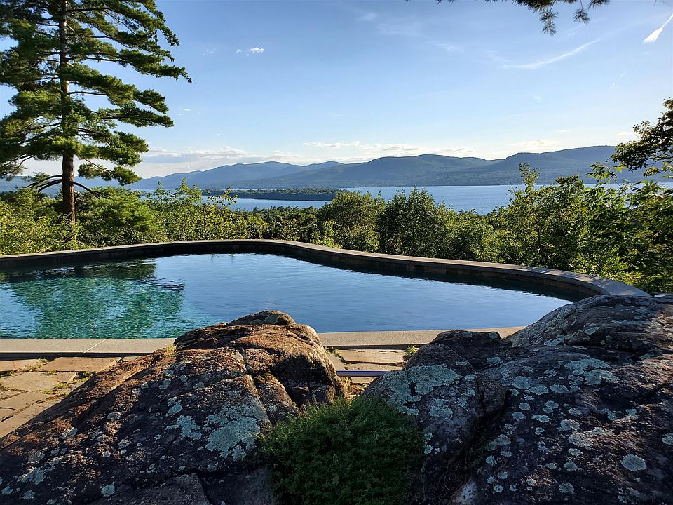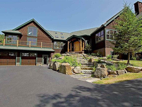 INCREDIBLY PRIVATE With magnificent panoramic lake views from this 6 bedroom environmentally designed home. Built for its surroundings, situated on 15 acres bordered by forever wild state land. Offering the ultimate in privacy but still close to the conveniences of Lake George. This custom home is loaded with luxury features including 6 fireplaces, master bedroom w/fireplace & private screened porch, master bathroom has spa tub w/fireplace & steam shower, walk-in closet w/hidden office upstairs. Custom cherry Eat-in kitchen w/sub-zero refrigerator, island w/plenty of counter space and a dining area next to the fireplace, adjacent screened porch also has fireplace. Multiple lake & mtn view decks, a home theater, home gym, sauna, heated infinity pool & more.