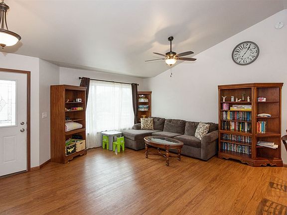 Open floor plan with vaulted ceiling. Lots of potential in unfinished LL to add an additional bedroom or family room and pre-plumbed for a bath. Abundant natural light throughout home. Cozy Corner fireplace in Family Room right off the kitchen. Master Suite with double vanity and walk-in closet. Stainless Kitchen Appliances and Breakfast bar. Fenced backyard