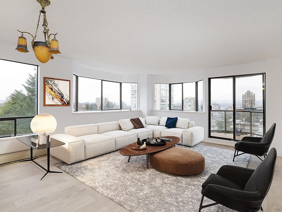 PRICE DROP! Rarely available at The Shaughnessy! This bright and spacious corner unit home has been freshly painted with new laminate flooring. Amazing views of the water, mountain and city with expansive North, West, South exposures. Direct elevator opens up exclusively and safely to your private foyer. Bring warmth and coziness into the living room with the wood-burning fireplace. Quiet building in a great location - steps to South Granville shops, restaurants and transit. 2 parking stalls included. Sorry, no pets allowed. Book your viewing today!