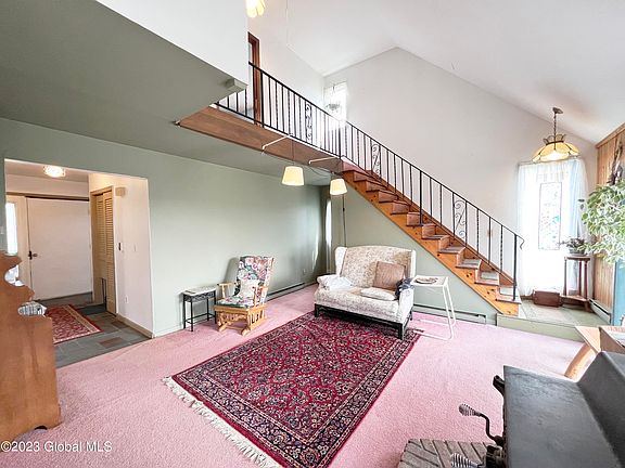 Amazing and peaceful views year round of the Hilltowns with southern exposure on this 4.7 acre lot. You'll love the Fall colors On a clear day in the winter you can see all the way to Mariaville Lake . Great floor plan with first floor bedroom and full bath. The first floor great room has high ceilings and opens to the deck as does the dining area which overlooks the pond. Kitchen is listed as Eat in because of adjacent Dining Area. Full basement with walk-out has a partially finished bath and a wood stove that is the primary heat source. So much potential in the basement which is Walk Out.