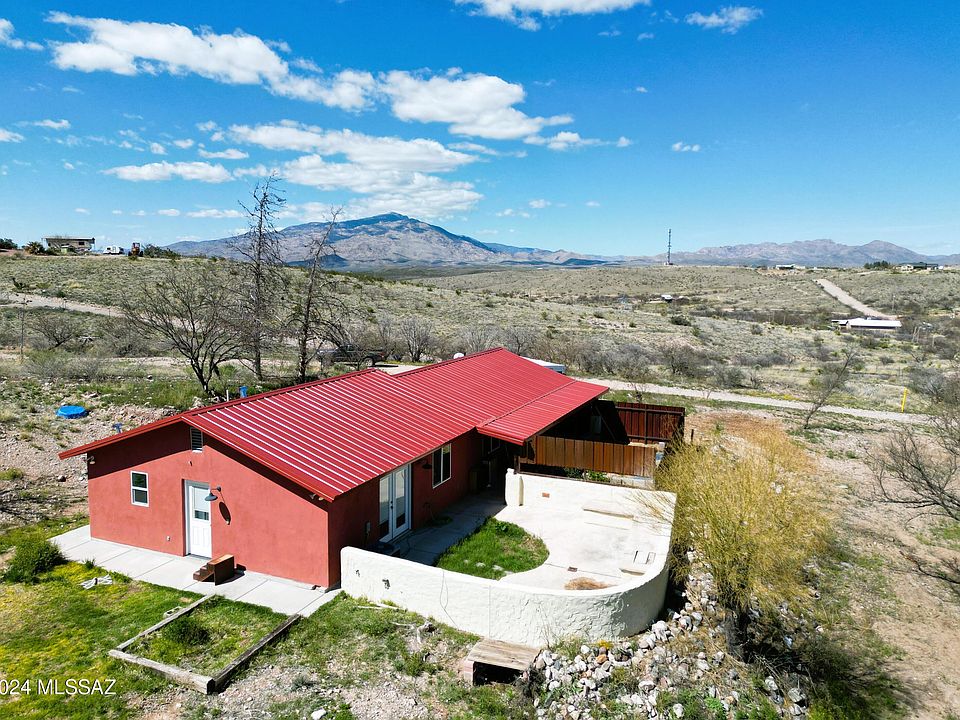 Adorable home has been updated and upgraded in 2023 with brand new roof, new dual pane windows, Samsung kitchen appliances and Washer and Dryer, On-Demand Water Heater, new kitchen faucets including Pot filler, new shower and sinks in bathrooms. Bathroom off great room has remote controlled Bluetooth speaker with light in ceiling. Double doors from main bedroom open to private patio area with misting system. Stunning butcher block counters in kitchen and bathroom. A second casita is 12X24 is insulated and has water and electricity, ready to be an office, playroom, schoolroom, crafts, She-Shed, WHATEVER! All this and more on fenced ten-acre lot, storage shed, private well, two septic systems, and 170 trees with irrigation. In the Benson & Vail school districts. HILLTOP GEORGEOUS VIEWS!!