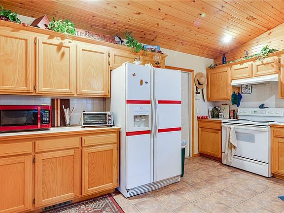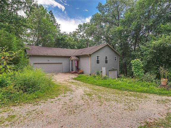 Cute home on 25 acres with a wrap around covered porch! Large 24X38 workshop with 2 doors & 220V power. Security system. Living room has carpet, vaulted ceiling and is open to the kitchen. Nice kitchen with lots of cabinet space, appliances, and pantry. Wood ceiling in living/kitchen area. Master bedroom is the only bedroom on the main level and has his/her closets, dual vanity & shower. Laundry is in master bath. Sit out and enjoy the secluded & peaceful scenery on the deck. 2 workshops downstairs with access to patio. One has an overhead door & one has a wood stove. 2 feed plots on the 25 acres great for hunting. Come see this one!