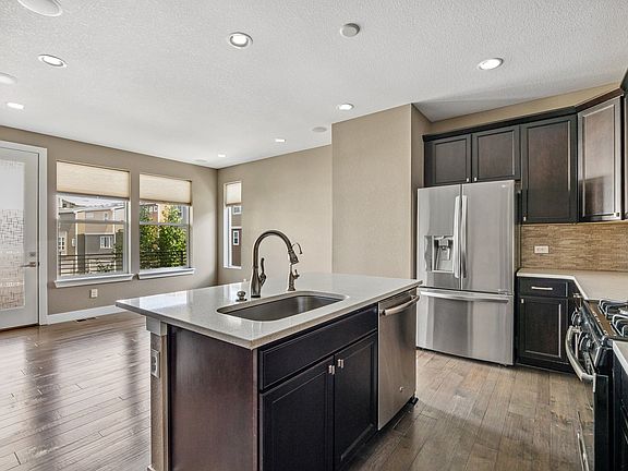 This stunning townhouse is located in the highly desirable South Creek neighborhood, offering unbeatable access to parks, scenic trails, great restaurants, coffee shops, and retail. You'll be just minutes from Cherry Creek State Park with quick connections to S. Parker Rd, E-470, and I-25 making commuting and exploring the Denver metro area a breeze. Inside, you'll find a modern, thoughtfully designed layout with a stylish and welcoming feel. The entry level includes a bright foyer, a flexible office or bonus room, and convenient access to the attached two-car garage. On the second level, enjoy an open-concept kitchen featuring rich cherry cabinetry, stainless steel appliances, and a spacious dining area. The cozy living room opens to a private balcony, perfect for your morning coffee or evening unwind. A bedroom and bath are also located on this level. Upstairs, the primary suite offers a luxurious five-piece bathroom with a dual-sink vanity, walk-in closet, and spa-like finishes. Another generously sized bedroom with its own full bath and a convenient laundry area complete this floor. Head up one more level to access the rooftop deck an incredible outdoor space with panoramic views, perfect for entertaining, grilling, or simply relaxing. Additional highlights include central A/C, a water filtration system, new washer and dryer, and a built-in walk-in pantry. Don't miss your chance to call this beautifully upgraded home yours available now for rent! Tenant is responsible for Gas, Electric, Trash and Water 1 Year lease minimum